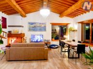 Kamenný venkovský dům připomíná tradiční toskánské sídlo, ale s moderními prvky, jako jsou velká, prosklená okna, která do interiéru pouští moře světla a vytvářejí pocit propojení s venkovním prostorem.