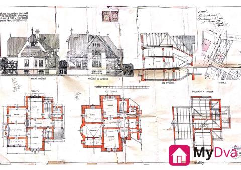 Nabízíme k prodeji vyjímečnou nemovitost, kterou je secesní vila postavená v roce 1907. Tato nemovitost nabízí bohaté možnosti využití. Je možné ji využít jako doposud, k vlastnímu bydlení, ale také například jako reprezentativní sídlo firmy. Ve vile je spousta zachovalých secesních prvků, které při jejich zachování a citlivé rekonstrukci zvýší hodnotu a atraktivitu celého objektu. V současné době je vila obývána majiteli této nemovitosti. V přízemí vily je chodba a čtyři obytné místnosti, dále kuchyně, koupelna a toaleta. V prvním patře jedna obytná místnost s terasou a dva vstupy do rozlehlých půdních prostor, které lze využít k rozšíření obytné části domu. Pod celým domem jsou rozlehlé suterénní prostory vhodné jako úložné a dále velká kotelna, se zánovním kotlem na uhlí s automatickým přikladačem. K vile náleží velkorysý pozemek se zahradní fontánou, zahradním domkem a spoustou krásných vzrostlých stromů. Z důvodu respektování soukromí současných majitelů nejsou foceny všechny obytné prostory. Vážným zájemcům umožníme po dohodě prohlídku ve sjednaném termínu. Uvedené výměry jsou orientační. Pokud máte zájem o více informací o této opravdu vyjímečné nemovitosti, volejte makléři a navštivte naše stránky mydvareality