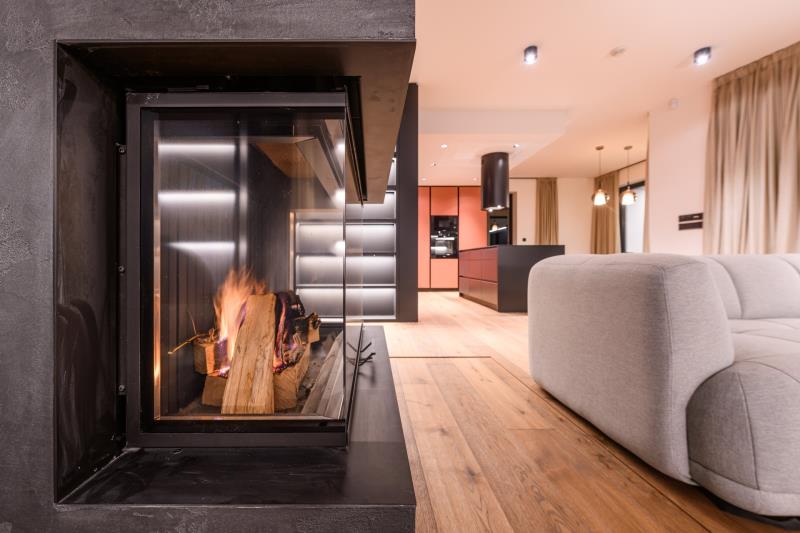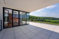 Celou budovu lemují terasy s designovým večerním osvětlením navazující na obytný prostor.
