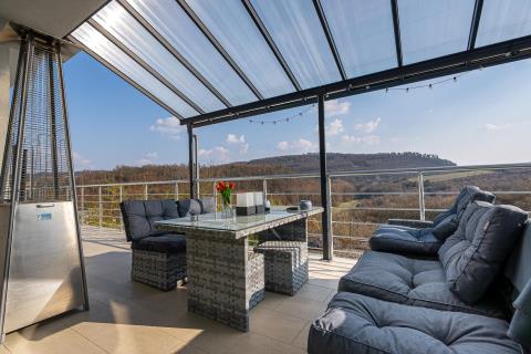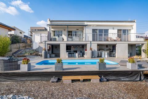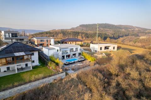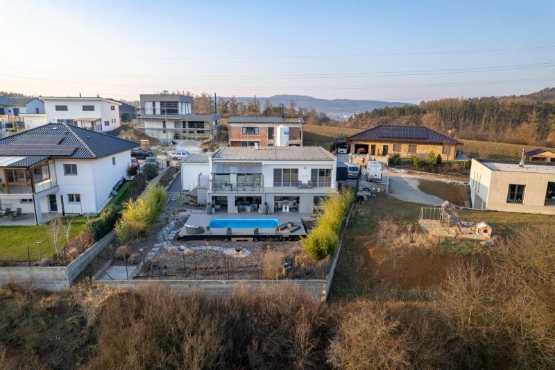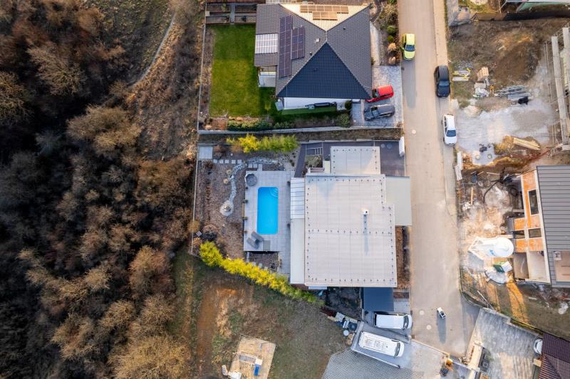 PRODEJ MODERNÍHO A ELEGANTNÍHO BUNGALOVU 4+kk S PROSTORNOU TERASOU, BAZÉNEM A 2 GARÁŽEMI - KRÁLŮV DVŮR, KŘIŽATKY Toužíte po bydlení, které spojuje eleganci, soukromí a jedinečný kontakt s přírodou? Představuji Vám výjimečný, moderní bungalov z roku 2019, situovaný v klidné, slepé ulici nové rezidenční zástavby - Králův Dvůr, Křižatky. ul. Na Vinohradech na pozemku 663 m2. Tato nemovitost nabízí to, co je dnes skutečně vzácné - otevřený prostor, dostatek světla, soukromí a ničím nerušené výhledy do krajiny. DOMINANTOU DOMU je vzdušný obývací prostor s designovou kuchyní, který plynule navazuje na velkorysou terasu (cca 40 m2) orientovanou na jihovýchod. Každý den zde můžete začínat s výhledem do zeleně a v naprostém klidu. EXTERIÉR je navržen pro maximální komfort i relaxaci - najdete zde bazén, kryté venkovní posezení, plně vybavenou venkovní kuchyni i zázemí pro společenské chvíle s rodinou a přáteli. Díky svažitému pozemku máte zajištěn trvalý výhled do krajiny směrem na Koněpruské jeskyně, bez rizika další výstavby. DISPOZICE DOMU 4+kk je promyšlená do posledního detailu: (VIZ. PŮDORYS) - podlahová plocha cca 120 m2, užitná plocha s terasou cca 140 m2 + 2 garáže a prostor pod terasou - vstupní chodba/zádveří - prostorný obývací pokoj s designovou kuchyňskou linkou a komorou - hlavní ložnice s vlastní koupelnou - další dva pokoje s přímým vstupem na terasu - druhá koupelna s WC - technická místnost Cena domu zahrnuje i většinu vybavení, nábytek dle dohody. DŮRAZ NA KVALITU A TECHNOLOGIE: - moderní stavební systém Pasifbrick - kvalitně zateplená rovná střecha - dům je napojen na elektřinu, vodovod a kanalizaci - elektrický kotel s podlahovým vytápěním + krbová kamna - plastová okna s trojskly - kvalitní interiérové dveře, většina pouzdrových - kvalitní podlahy - zabezpečovací a kamerový systém - energetická třída C (měsíční náklady cca 10.500 Kč) Komfort parkování zajišťují dvě garáže a další 2 parkovací místa na pozemku. Lokalita je ideální pro ty, kteří hledají klidné rodinné bydlení s výbornou dostupností - Beroun 9 km, Praha 30 km. V docházkové vzdálenosti je dětské a sportovní hřiště i MHD. Financování hypotečním úvěrem je samozřejmostí,rádi Vám zajistíme individuální podmínky. Tento dům není jen nemovitost. Je to životní styl. Zvu Vás na osobní prohlídku. Pozn. rozměry jsou orientační