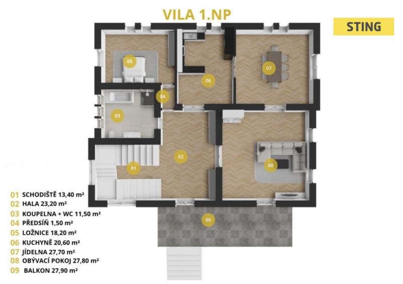 Hledáte výjimečné rodinné sídlo, které v sobě spojuje historii, eleganci a soukromí? Nebo snad prostor pro stylové podnikání? Nabízíme Vám ke koupi jedinečnou secesní vilu Eliška, situovanou v malebné krajině, pouhých 130 km východně od Prahy. Tato unikátní stavba z roku 1905 sloužila původně jako letní rezidence. V roce 2001 prošla rozsáhlou a citlivou rekonstrukcí, která zachovala její původní kouzlo a přitom splňuje nároky moderního bydlení. Vila je plně podsklepená a má tři nadzemní podlaží. Dominantním architektonickým prvkem je věž se schodištěm a nádherným výhledem do zahrady i na barokní poutní kostel v obci. Dispozice vily: • 1. NP: vstupní hala, kuchyň, jídelna, obývací pokoj se vstupem do zimní zahrady, šatna • 2. NP: 4 pokoje, vstup na balkon • Podkroví: centrální společenská místnost s kulečníkem, 3 další pokoje, technická místnost, šatna. Každé patro disponuje samostatnou koupelnou, každá v jiném stylovém tónu. Interiér vily je pečlivě navržen do nejmenšího detailu. Odhalené masivní trámy v podkroví dodávají prostorům mimořádnou útulnost. Vytápění je zajištěno podlahovým topením. Bezpečnost nemovitosti garantuje kamerový systém. K vile náleží také prostorná garáž pro dva vozy s technickým zázemím. Vstup na pozemek je řešen dálkově ovládanou bránou. Zahrada a exteriér: Rozlehlá zahrada (2 799 m²) s kašnou, vzrostlými stromy a romantickými zákoutími připomíná zámecký park. Večerní osvětlení dodává vile zvláštní kouzlo a atmosféru. Vysoký plot zajišťuje absolutní soukromí a klid. Technické údaje: • Zastavěná plocha: 342 m² • Plocha pozemku: 3 228 m² • Garáž: 87 m² • Počet podlaží: 3 + sklep • Voda: obecní vodovod • Elektřina: 230/400 V • Odpad: napojení na kanalizaci • Vytápění: podlahové • Vlastnictví: osobní Lokalita: Vila se nachází v obci Radim u Luže. V Luži naleznete veškerou občanskou vybavenost. Okolní příroda je mimořádně bohatá – v blízkosti se nacházejí pískovcové útvary Toulovcovy Maštale, přírodní rezervace Poklona, zřícenina hradu Košumberk, rozhledna Jahůdka nebo Žulová stezka Horkami. Lokalita je ekologicky čistá, bez průmyslových podniků, s výbornou kvalitou ovzduší. Virtuální prohlídka na adrese https://my.matterport.com/show/?m=Qr5jHJQAaHu. Do konce prosince 2025 nabízíme prostřednictvím našeho partnera úrokové sazby od 4,29 % p.a. Více informací Vám sdělí náš specialista na prohlídce.
