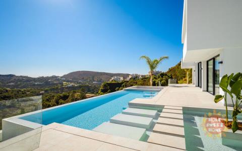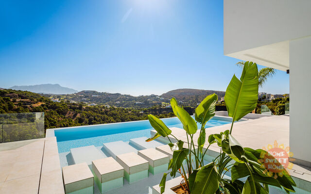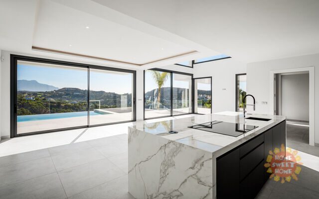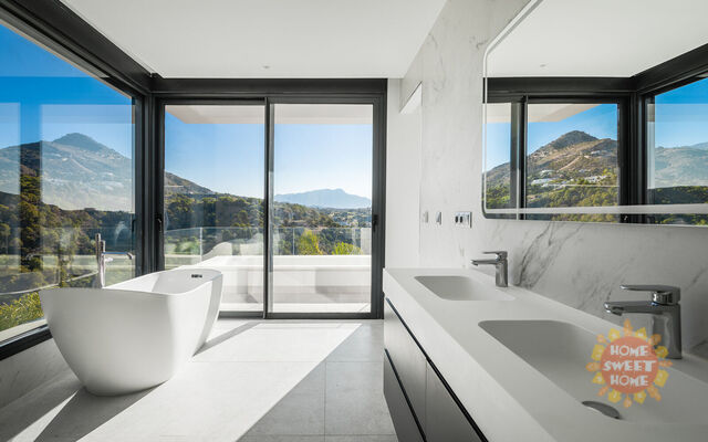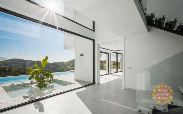 Hledáte nemovitost ve Španělsku v oblasti Marbella? Rádi Vám poradíme s výběrem. Nabízíme prázdninové nemovitosti, investiční nemovitosti i nemovitosti k trvalému bydlení. Zajistíme pro Vás kompletní realitní servis včetně případného následného pronajímání. Představujeme vám tuto zbrusu novou moderní vilu v exkluzivní uzavřené komunitě Monte Mayor v Benahavisu v Malaze. Tato luxusní nemovitost nabízí prostornou obytnou plochu 786,47 m2 a může se pochlubit 5 ložnicemi, takže je ideální pro rodiny nebo ty, kteří hledají dostatek prostoru. Tato vila se nachází na velkém soukromém rohovém pozemku o rozloze přibližně 2895 m2 a nabízí otevřený výhled a pocit soukromí. Při vstupu do vily vás přivítá chodba s dvojitou výškou s výhledem na vodní vrstvu, která vytváří velkolepý a elegantní vstup. Panoramatický výhled z chodby ukazuje úchvatné golfové hřiště Marbella, majestátní horu La Concha a historický hrad Monte Mayor. Otevřený půdorys vily umožňuje plynulý tok mezi obytnými prostory a vytváří pocit jednoty a prostornosti. Jedním z výrazných prvků této vily je nádherné dřevěné schodiště ze skla, které jí dodává nádech sofistikovanosti a elegance. Když vystoupáte po schodišti, najdete solárium o rozloze 110 m2 s 360° výhledem na hory, údolí a golfové hřiště. Tato střešní oáza je ideálním místem k odpočinku a vychutnávání si krásy okolí. Stejně působivé jsou i venkovní prostory této vily. Dům je obklopen několika terasami, včetně příjemné verandy, kde si můžete vychutnat stolování pod širým nebem nebo jen tak odpočívat a slunit se. Objekt je zasazen do velké kamenné zahrady se zdí a dvěma úrovněmi, což vytváří pocit klidu a soukromí. Ústředním bodem venkovního prostoru je báječný nekonečný bazén s chill out zónou/ohništěm, který nabízí ideální místo k ochlazení a zábavě hostů. Tato vila je navržena s vynikajícími kvalitami povrchové úpravy, které zajišťují luxusní a pohodlné bydlení. V celém objektu je instalováno podlahové vytápění, které poskytuje teplo a pohodlí v chladnějších měsících. K dalším pozoruhodným prvkům patří venkovní kuchyně, vířivka, šatna v přízemí a sklepní sklad. Kromě toho je k dispozici garáž/parkovací místo pro více než 3 auta, které poskytuje dostatek prostoru pro vozidla. Souhrnně lze říci, že tato luxusní moderní vila v Monte Mayor v Benahavisu nabízí dokonalou kombinaci moderního designu, nádherného výhledu a luxusního vybavení. Prostorné obytné prostory, soukromý rohový pozemek a vynikající vlastnosti povrchové úpravy činí z této nemovitosti ideální volbu pro ty, kteří hledají luxusní a pohodlný životní styl v prestižní lokalitě. Prodejní cena nemovitosti je 2.450.000 Eur.