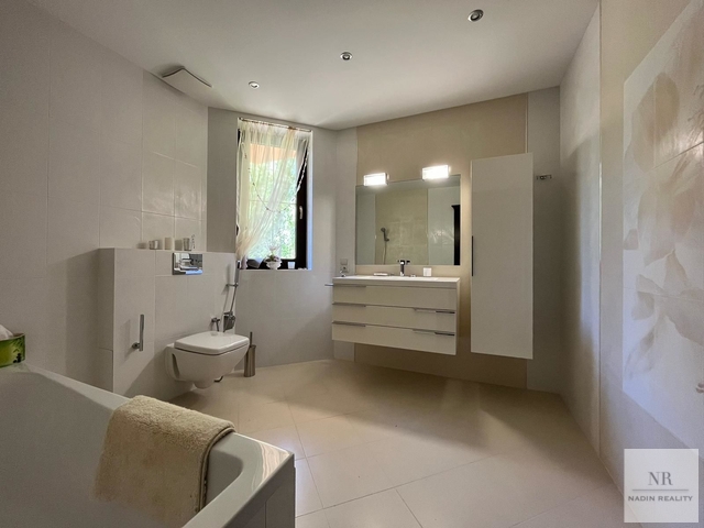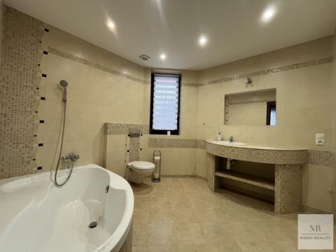 Nabízíme k prodeji exkluzivní vilu, která se nachází v klidné části obce Mezirolí, v okresu Karlovy Vary. Tento samostatný cihlový dům s přízemní dispozicí a zastavěnou plochou 178 m² nabízí celkem 5 a více pokojů, což zajišťuje dostatek prostoru pro komfortní bydlení. Interiér domu je navržen s důrazem na eleganci a praktičnost. V přízemí se nachází prostorný obývací pokoj s krbem a TV koutem, jehož součástí je vstup na terasu a do zahrady. Dále zde naleznete jídelnu, plně vybavenou kuchyni, pracovnu, ložnici, koupelnu a toaletu. V 1. patře se nacházejí tři ložnice a dvě koupelny, které jsou ideální pro rodiny, které touží po soukromí a pohodlí. Dům je vybaven moderním sytémem vytápění s podlahovým topením a v suterénu se nachází technická místnost s plynovým kotlem a centrálním vysavačem. Podlahy jsou v kombinaci dřeva a mramoru, což dává interiéru luxusní nádech. Celková užitná plocha dosahuje 350 m², což poskytuje dostatek místa pro veškeré potřeby rodiny. Zahrada, která obklopuje dům a má výměru 1148 m², je zcela oplocená a nabízí soukromí a klid pro trávení volného času či pořádání rodinných akcí. Nemovitost byla zkolaudována v roce 2009 a je ve velmi dobrém stavu, což zaručuje bezproblémové bydlení. Tato vila představuje ideální volbu pro všechny, kteří hledají kvalitní a moderní bydlení v krásném prostředí. V případě zájmu o prohlídku nás neváhejte kontaktovat.