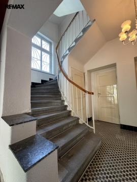 Představujeme Vám tuto nádhernou vilu postavenou pravděpodobně v roce 1927 s dobrou pěší dostupností do centra města Olomouce a přitom na klidném místě. Do vily se vstupuje bočním vchodem, kudy vstupujete do bytu s dispozicí 6+1 a celkovou přibližnou užitnou plochou 163 m². V 1.PP se nachází sklepy s oddělenými prostory (22 m²; 10 m²; 6 m²). V 1.NP naleznete obývací místnost (29 m²), jídelnu (14 m²), kuchyni (9,6 m²), koupelnu (3,66 m²), spíž (2,6 m²), vstupní síň (7 m²) a verandu (4,4 m²). V 2.NP jsou 3 oddělené místnosti (25 m², 21 m², 12 m²), koupelna 4 m², průchozí komora (5 m²) směrem na WC (1,7 m²). V podkroví (3.NP) je už pouze jedna místnost (24,6 m²) a oddělené půdní prostory (30 m² a 6,5 m²). Všechny výměry jsou orientační bez zaměření odborného technika. Dům je v zastaralém stavu s nutnou budoucí modernizací (vyjma střechy, stáří cca 15 let).