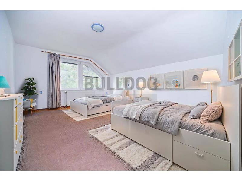 Hledáte bydlení a patříte k náročným klientům? Rodinná vila o celkové užitné ploše 408 m2 s pozemkem o velikosti 901 m2 se nachází v exkluzívní lokalitě Prahy 6 – Nebušice. Velkorysá dispozice o 10-ti pokojích, se třemi koupelnami, šatnou, prostornou vstupní halou a velkou terasou nabízí prostor pro každého člena rodiny. Na pozemku se navíc nachází částečně podsklepený zděný zahradní domek s krbem o zastavěné ploše 32 m2 a užitné ploše 58,5 m2, který je ideální pro pořádání letních oslav nebo ubytování hostů v soukromí mimo vilu. Pozemek je mírně svažitý, díky tomu je z vily krásný a nerušený výhled. V suterénu vily se nachází velká místnost ideální k využití jako společenská pro velkou skupinu lidí, domácí kino či posilovnu. V suterénu je také již nevyužívaná sauna, navazující prostor, kde býval ochlazovací bazének a dále několik skladovacích prostor. Z ulice je vjezd do vlastní dvojgaráže s elektricky ovládanými vraty, garáž je přístupná ze suterénu vily. Vila z roku 1980 hledá svého nového majitele, který zde zrealizuje své představy o ideálním domově. V rámci vily byla započata rekonstrukce stoupacího vedení, topení je realizováno plynovým kotlem Protherm, voda ohřívána bojlery, plastová okna, fasáda zateplena 5 cm polystyrenu, střešní krytina tašky, dům je napojen na všechny inženýrské sítě. Pro účely prodeje vily byla zpracována technická inspekce o stavu nemovitosti a průkaz energetické náročnosti budovy – kompletní zpráva bude zájemcům poskytnuta po prohlídce. Nebušice patří mezi nejžádanější rezidenční lokality v Praze. Nachází se na severozápadě hlavního města, v městském obvodu Praha 6, a spojují klidné prostředí s rychlou dostupností do centra i na letiště Václava Havla. Výjimečnost vile dodává její umístění 250 m od přírodní rezervace Divoká Šárka – oáza klidu ve velkoměstě nabízí nespočet možností pro pěší či cyklo turistiku, např. krásná Nebušická vyhlídka, na cyklovýletu se bude hodit osvěžení či posílení, které Vám poskytne Hostinec Divčí Skok. V Divoké Šárce se nachází mimo jiné i vodní nádrž Džbán či koupaliště Divoká Šárka, která jsou v létě oblíbená ke koupání. Nedaleko domu se nachází i oblíbený park Dinolive. Díky tomu zde panuje příjemná atmosféra kombinující venkovský klid se všemi výhodami velkoměsta. Nebušice jsou dlouhodobě vyhledávány náročnými klienty, diplomaty a mezinárodní komunitou. K tomu přispívá i blízkost prestižních vzdělávacích institucí, především International School of Prague. V pěší vzdálenosti od vily se nachází dětské hřiště, supermarket Albert, pošta, Czech point, úřad městské části, lékárna, restaurace, sokolovna, mateřské a základní školy. V blízkosti (500 m od vily) je autobusová zastávka s linkami na letiště (13 min.), stanice metra Bořislavka (8 min.), Přední Kopanina (4 min.), Tuchoměřice (10 min.), busem se dostanete přímou linkou i do centra Prahy (Hradčanská, Hlavní nádraží, Muzeum, Anděl, Zbraslav), a to linkami 161, 312 a 907. Majitel nemovitosti a realitní kancelář si vyhrazují právo prodat nejvyšší nabídce. Uvedená prodejní cena není závazná. Více informací Vám sdělí realitní makléř.