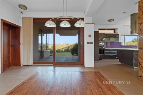 Na samotném konci klidné slepé ulice Bohuslava Martinů v Letovicích stojí výjimečná vila, která v sobě spojuje promyšlenou architekturu, technologickou dokonalost a absolutní soukromí. Dům byl postaven v letech 2008–2009 v tom nejvyšším možné standardu, a od té doby je udržován na nejvyšší úrovni. Celková plocha pozemku činí 2 002 m², z toho zastavěná plocha 232 m² a udržovaná zahrada s hřištěm a zahradním domkem 1 770 m². Užitná plocha domu je celkem 329 m² a je rozdělena do tří podlaží. Dispozice domu je aktuálně 5+kk, s možností rozšíření na 6+kk díky připravenému prostoru ve sklepním podlaží. Přízemí domu je srdcem celé vily. Otevřený obytný prostor s kuchyní a jídelnou o rozloze 63,75 m² působí vzdušně a reprezentativně. Dominantou interiéru je krb s onyxovou stěnou, do které jsou zasazeny polodrahokamy. Z obývací části je přímý vstup na terasu a do zahrady, která nabízí naprosté soukromí a klid. V přízemí se dále nachází luxusní master bedroom s vlastní koupelnou, samostatné WC a vstup do dvojgaráže přímo z interiéru. V patře se nachází tři neprůchozí pokoje, koupelna s toaletou a terasa s výhledem do zahrady. Suterén je navržen tak, aby kombinoval technické zázemí s prostorem pro relaxaci nebo práci. Nachází se zde prádelna se sušárnou, technická místnost, úložné prostory a prostorná pracovna s možností přestavby na fitness či wellness zónu. Nechybí zde ani vinný sklep a prostor pro uskladnění ovoce a zeleniny. Technické zázemí domu je výjimečné svou komplexností i precizností. Dům je napojen na hlubinný zemní vrt o hloubce 156 m s tepelným čerpadlem o výkonu 12 kW. Součástí je fotovoltaická elektrárna o výkonu 12 kWp s watrouterem pro optimalizaci využití energie a akumulační nádrží o objemu 1000 l. Systém přepínání fází a inteligentní správy elektřiny zajišťuje maximální energetickou efektivitu. Rekuperace značky ATREA umožňuje manuální regulaci výměny vzduchu a venkovní registr předehřívá vzduch v zimě a ochlazuje v létě. Interiér působí elegantně a kvalitně. Žulové parapety v celém domě, vinylové podlahy a velkoformátová dlažba. Každý detail byl navržen s ohledem na dlouhodobou funkčnost a estetiku. Dům má celkem tři koupelny a nechybí ani zabezpečovací systém s pohybovými čidly. Na pozemku se nachází také i vlastní vydatný vrt hluboký 16 metrů se dvěma prameny (v 10 a 12 metrech) a výkonem až 2 m³/hod. Voda je přivedena do domu přes mezistanici, aktuálně funkční napojení je přímé ze studny. Součástí zahrady je bazén se skimerem a možností elektrického ohřevu. Tato vila není jen domem, ale je to promyšlený systém pohodlí, bezpečí a moderního bydlení. Každý metr čtvereční nese rukopis precizní práce, důrazu na kvalitu a smyslu pro detail. Pokud hledáte nemovitost, která spojuje luxus, technologickou vyspělost a naprosté soukromí, tato vila v Letovicích vás nadchne od prvního okamžiku.