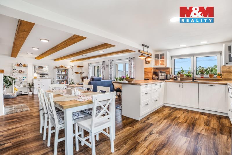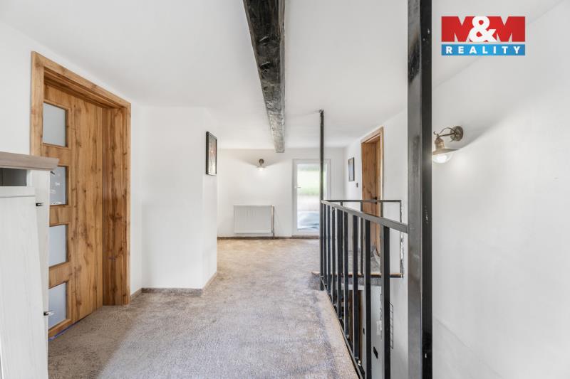 Nemovitost je rozdělena na dvě samostatné bytové jednotky – prostorný byt 6+kk a menší 1+1, které lze využít k dlouhodobému či krátkodobému pronájmu. Dům tak představuje zajímavou investiční příležitost s potenciálem stabilního výnosu. V domě proběhla kompletní rekonstrukce – nové rozvody elektřiny a vody, podlahové topení, nový kotel na pelety, trámy, traverzy, schodiště i podlahy. Ohřev vody zajišťuje bojler, odpad je sveden do septiku, v kuchyni je řešen přepadem do zahrady. Sklep je zasypaný. V patře zbývá dokončit jednu místnost, která je připravená pro vybudování další koupelny. Na pozemku se nachází dvě garáže a studna. Dům nebude po prodeji napojen na veřejný vodovod, ale je možné využít vlastní zdroj vody ze studny nebo se zpětně připojit na veřejný vodovod. Terasa vyžaduje opravu, ale nabízí krásný výhled do okolní přírody. Nemovitost se nachází v klidné části obce s dobrou dostupností do Děčína a je vhodná jak pro investory, tak pro kombinaci bydlení a pronájmu
