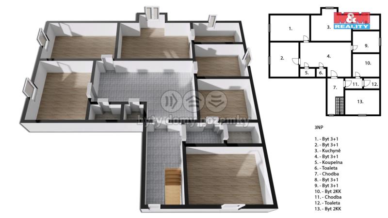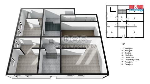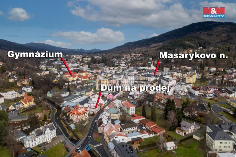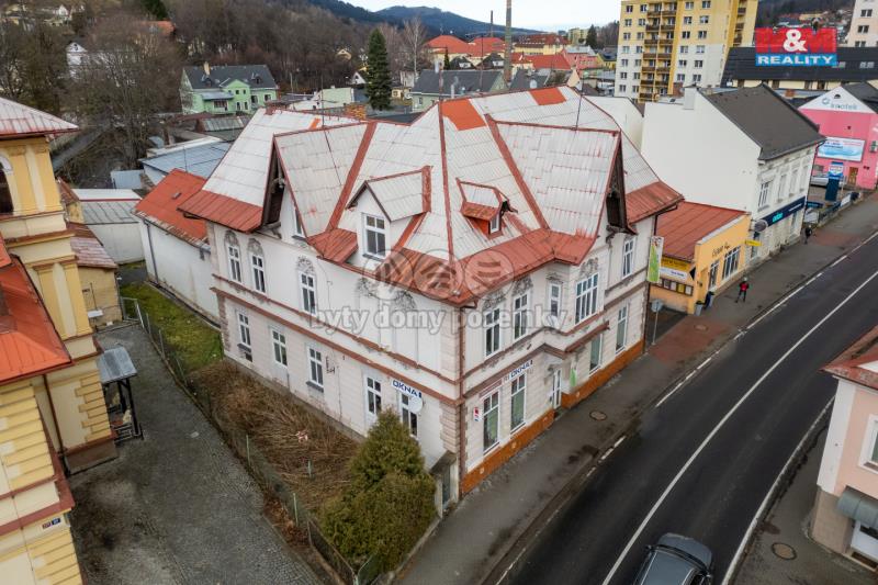 Ve výhradním zastoupení nabízíme komerční dům v centru města, ideální pro investici či vlastní podnikání. Zastavěná plocha 321 m², užitná plocha 540 m², zahrada 65 m². Kryté stání pro jedno auto s dalším parkováním na 1/4 pozemku, které jsou v ceně nemovitosti. Dům má tři nadzemní podlaží, je částečně podsklepený. První podlaží má pět pronajatých místnosti a jednu s možností komerčního pronájmu nebo vytvoření apartmánu s vlastním vchodem a zahradou. Druhé podlaží nabízí sedm místností, šest je pronajatých, jedna volná. Ve třetím podlaží je kompletně zrekonstruovaný byt 3+1 (110 m²), který je pronajatý, druhý byt 2+kk (35 m2), kde je nova kuchyňská linka, je rovněž momentálně pronajatý. K dispozici je prostorný půdní prostor k dalšímu využití. Vytápění plynovým kotlem, napojeno na veřejnou kanalizaci, nové plastové okna a nové rozvody vody a elektřiny. Strategická poloha s občanskou vybaveností. Více informací u RK.