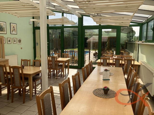 Exkluzivně nabízíme k prodeji zajímavou nemovitost penzion Mánes v obci Čechy pod Kosířem. Tato obec má ideální polohu pro provozování ubytovacího zařízení s restaurací. Čechy pod Kosířem leží zhruba 10 km severozápadně od města Prostějova, při západním úpatí vrchu Velký Kosíř. V obci se nachází základní infrastruktura a občanská vybavenost a také vyhledávaný zámek s krásnou zámeckou zahradou, expozicí Josefa Mánesa, Muzeum historických kočárů a Hasičské muzeum. Prostory objektu jsou vhodné pro ubytování a pořádání veškerých společenských a kulturních akcí. V této lokalitě je nemovitost tohoto typu ojedinělá. Celá podlahová plocha objektu je 331m². Objekt je částečně podsklepený a slouží k uložení pivních beček. Přízemí budovy je tvořeno z prostorného terasového sálu přístupného z restaurace a ze zadní strany z venkovní terasy. Dále se v přízemí nachází kuchyně, sklad potravin a sociální zařízení. Ve II.NP jsou situovány čtyři pokoje. Každý pokoj má své sociální zařízení. Dva pokoje jsou s balkónem a výhledem na venkovní terasu a nekrytý bazén. Ve III.NP jsou čtyři pokoje s jedním společným sociálním zařízením. Celková ubytovací kapacita je 41 lůžek, restaurace je pro 60 hostů a venkovní zastřešená terasa pro 20 osob. Parkování je možné před objektem na veřejných parkovacích plochách vyhrazených pro penzion Mánes nebo na vlastním pozemku na parkovací ploše pro cca pět osobních automobilů. Celková plocha pozemků ve funkčním celku je 1.026 m². Pro více informací či sjednání prohlídky nás kontaktujte.