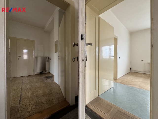 Dům je celopodsklepený (vyjma verandy) a má 2 samostatné byty, což umožňuje buď pohodlné vícegenerační bydlení, nebo kombinaci bydlení a pronájmu. Na obou patrech se nachází 2 podobně řešené byty s dispozicí 3+1, kde shodně najdete 3 pokoje (22,5 m², 22,5 m² a 22 m²), kuchyni (13,32 m²), komoru (6,6 m²), spíž, předsíň, záchod a balkon (3,78 m²). V podkroví/půdě se nachází pěkný udržovaný prostor, který může sloužit jako další byt, pracovna nebo ateliér. Celková plocha pozemku činí 1 377 m². Součástí je také prostorná dvojgaráž (42 m²) a rozlehlá zahrada (839m²), která nabízí dostatek prostoru pro relaxaci, rodinu i zahradničení. Dům je celkově v původním stavu před rekonstrukcí (vyjma oken v 2.NP, které jsou z roku 2023). Vytápění zajišťují zastaralé plynové kotle umístěné v jednotlivých bytech domu a ohřev TÚV v koupelně zajišťuje v 1.NP nefunkční karma a v 2.NP zastaralý plyn. bojler. Podlahová krytina obytných místností je pokryta zachovalými parketami; ve sklepech beton. Krytina střechy eternit.