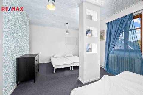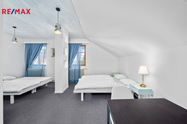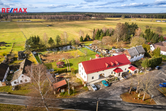 Exkluzivně nabízíme k prodeji objekt v obci Hranice u Nových Hradů. Tento dům sloužil v minulosti jako hostinec, cca před 22 lety byl opraven a přestavěn. Dnes slouží objekt k trvalému bydlení (bytová jednotka o dispozici 3+1). Část domu je využívána ke komerčnímu pronájmu. Nachází se zde 3 bytové k dlouhodobému pronájmu a 3 bytové jednotky ke krátkodobému pronájmu přes cestovatelské portály. K nemovitosti náleží rozlehlý pozemek o rozloze 2.783 m2, kde je k dispozici přírodní jezírko- rybník, velký výběh pro chov slepic, altánek, pergola, udírna a garáž či dílna. Je zde dostatek prostoru pro pěstování plodin, či výstavbu dětského hřiště nebo bazénu. Rozloha pozemku nabízí v tomto směru široké využití. Dům má 2 podlaží a dispozici 400 m2. 1. patro V přízemí, vedle hlavního vchodu se nachází společenská místnost, která dříve sloužila jako restaurace. Některé původní prvky tohoto využití zde byly zachovány a tak je možné takový provoz obnovit či využít k různým společenským akcím a teambuildingům. Dominantou této místnosti je krb, který v chladnějších měsících navozuje jak teplo, tak příjemnou atmosféru. K dobré obslužnosti napomáhá menší, částečně vybavená kuchyň, která na tuto místnost navazuje. Dále jsou v přízemí oddělené toalety a další společenská místnost - klubovna, kde je dominantou velký pingpongový stůl a vstup na rozlehlou venkovní terasu, kde je dostatek prostoru pro společenské posezení či relax. Nachází se zde i sklep se vstupem na zahradu, který je možno využít jako kolárnu a dále je zde kotelna - dům je vytápěn kotlem na tuhá paliva. Samostatný vchod vedle hlavního vstupu má v přízemí i bytová jednotka, která je momentálně využívaná k trvalému bydlení. Tato jednotka má dispozici 3+1. 2.patro Ve druhém patře se nachází 3 bytové jednotky, 2x 1+kk a 2+kk - tyto byty momentálně obývají trvalí nájemníci. Dále jsou zde 3 samostatné pokoje jako ubytování pro hosty, určené ke krátkodobým pobytům, provozované přes portál Airbnb. Tyto pokoje jsou vybaveny vlastní koupelnou a manželskou postelí či samostatnými lůžky. Tyto prostory propojuje společná místnost, která je v tuto chvíli zaměřená na dětské aktivity - postýlka, přebalovací pult, hračky, knihovna a je zde i menší úložný prostor - komora. Výhodou tohoto objektu je jeho široká možnost využití a investiční příležitost - ať už jako stávající ubytovací zařízení nebo i jako rekreační objekt pro vícečlennou rodinu či blízké a známé. Je možnost provoz rozšířit o pohostinství, restauraci, teambuildingové účely, firemní večírky. Nebo i objekt využít jako firemní prostor - výrobnu, sklad, dílnu a ubytovací zázemí pro zaměstnance. Lokalita je ideální svou dobrou dopravní obslužností, v blízkosti jsou Nové Hrady, Suchdol nad Lužnicí i České Velenice, zároveň je v okolí klid a malebná příroda CHKO Třeboňska. Místo si najde hojné turistické využití díky dostatku cyklostezek. V dojezdové vzdálenosti jsou také oblíbené Novohradské hory. V případě zájmu nás neváhejte kontaktovat.