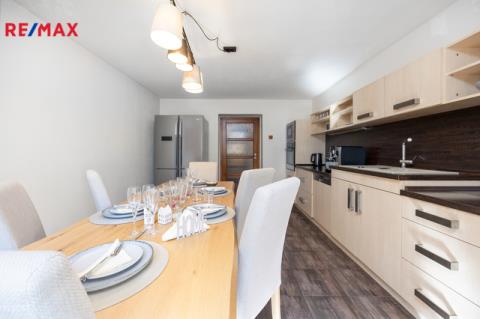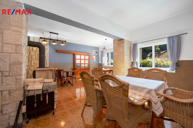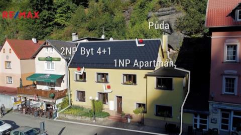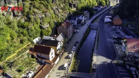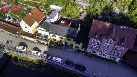 Vstupní brána do Národního parku České Švýcarsko — malebná pohraniční obec zaměřená na cestovní ruch na soutoku Labe a Kamenice s nezaměnitelnou atmosférou v každém ročním období. Vítejte v ikonickém Hřensku. Komfortní bydlení, podnikání v srdci turistické destinace, nebo kombinace obojího? Tento dvoupodlažní dům v centru Hřenska nabízí jedinečnou příležitost spojit vlastní bydlení s podnikáním a stabilním výnosem z pronájmu apartmánu. Navíc lze v domě vybudovat až tři další apartmány, čímž se výrazně navyšuje investiční potenciál. Dům disponuje dvěma nadzemními podlažími o celkové užitné ploše 336 m², půdou s potenciálem obytné vestavby, střešní terasou, malou zahrádkou a parkovacím stáním. Výměry ploch: Celková podlahová plocha: 357 m² Celková užitná plocha: 336 m² Celková velikost pozemku: 236 m² 1. nadzemní podlaží: útulný apartmán, komerční a skladové prostory, samostatné WC a technické zázemí. 2. nadzemní podlaží: kuchyň s jídelnou, obývací pokoj, dvě ložnice, koupelna, samostatné WC, pracovna, prádelna a úložné prostory. Součástí domu je také prostorná půda se vstupem na střešní terasu a zahrádku za domem. Dům je plně vybavený. Okna: dvojskla ve všech obytných místnostech s jižní orientací. Stav: po rekonstrukci — fasáda, střešní krytina, podlahové krytiny. Vytápění: centrální domovní kotel na pelety Eko Scroll V7; elektrický kotel Protherm Ray 14 KE. TUV: Dražice OKCE 200 NTR/HV Větrání: pasivní větrání s přípravou pro centrální rekuperaci. Zabezpečení: alarm a čidla pohybu v zádveří. Náklady na vytápění: 2 083 Kč/měs. Náklady na elektřinu: 2 945 Kč/měs. Zaujal vás potenciál této nemovitosti? Neváhejte mě kontaktovat — nemovitost Vám rád osobně představím.