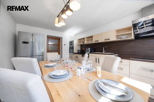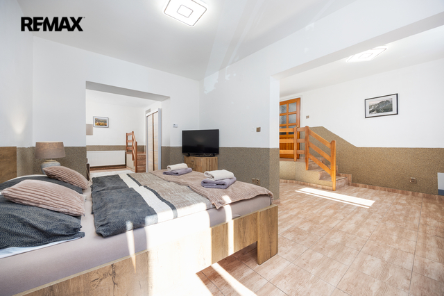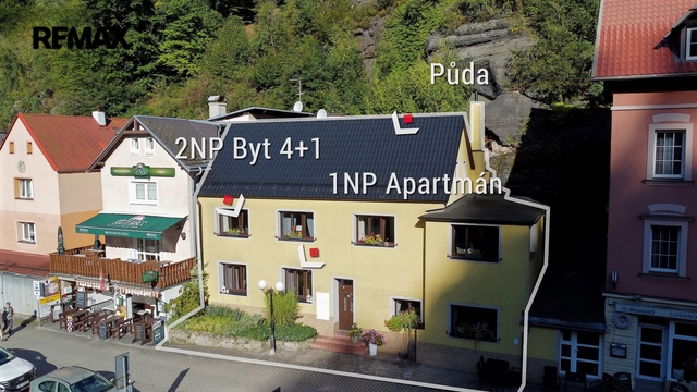 Vstupní brána do Národního parku České Švýcarsko — malebná pohraniční obec zaměřená na cestovní ruch na soutoku Labe a Kamenice s nezaměnitelnou atmosférou v každém ročním období. Vítejte v ikonickém Hřensku. Komfortní bydlení, podnikání v srdci turistické destinace, nebo kombinace obojího? Tento dvoupodlažní dům v centru Hřenska nabízí jedinečnou příležitost spojit vlastní bydlení s podnikáním a stabilním výnosem z pronájmu apartmánu. Navíc lze v domě vybudovat až tři další apartmány, čímž se výrazně navyšuje investiční potenciál. Dům disponuje dvěma nadzemními podlažími o celkové užitné ploše 336 m², půdou s potenciálem obytné vestavby, střešní terasou, malou zahrádkou a parkovacím stáním. Výměry ploch: Celková podlahová plocha: 357 m² Celková užitná plocha: 336 m² Celková velikost pozemku: 236 m² 1. nadzemní podlaží: útulný apartmán, komerční a skladové prostory, samostatné WC a technické zázemí. 2. nadzemní podlaží: kuchyň s jídelnou, obývací pokoj, dvě ložnice, koupelna, samostatné WC, pracovna, prádelna a úložné prostory. Součástí domu je také prostorná půda se vstupem na střešní terasu a zahrádku za domem. Dům je plně vybavený. Okna: dvojskla ve všech obytných místnostech s jižní orientací. Stav: po rekonstrukci — fasáda, střešní krytina, podlahové krytiny. Vytápění: centrální domovní kotel na pelety Eko Scroll V7; elektrický kotel Protherm Ray 14 KE. TUV: Dražice OKCE 200 NTR/HV Větrání: pasivní větrání s přípravou pro centrální rekuperaci. Zabezpečení: alarm a čidla pohybu v zádveří. Náklady na vytápění: 2 083 Kč/měs. Náklady na elektřinu: 2 945 Kč/měs. Zaujal vás potenciál této nemovitosti? Neváhejte mě kontaktovat — nemovitost Vám rád osobně představím. Prodávající si vyhrazuje právo vybrat kupujícího na základě jím zvolených kritérií.