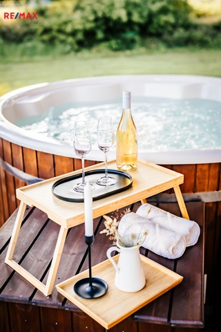 Na pozemku se nachází finská sauna s odpočívárnou. Součástí je zpevněná venkovní zóna s celoročně využitelnou sprchou s dohřevem proti zamrznutí. Dále je na pozemku stylové ohniště s posezením.