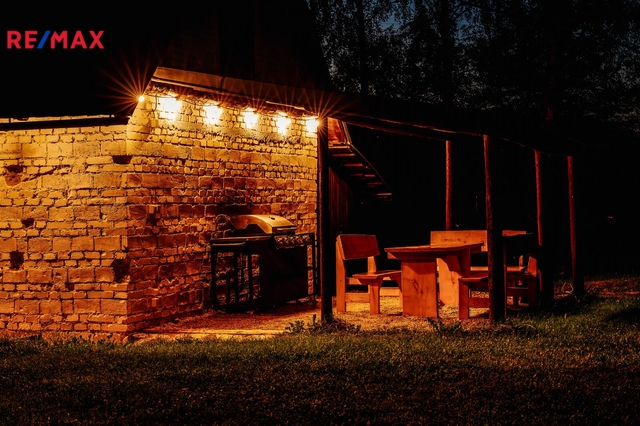 Na pozemku se dále nachází přilehlá budova, která slouží jako sklad, technické zázemí, úložiště kol, lyží, dřeva a garáž pro traktor. Možnost využití půdních prostorů. Součástí je zastřešení, kde je koupací sud s dohřevem proti zamrznutí a krytá pergola s plynovým grilem a posezením.
