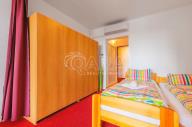 Stávající dispozice umožňuje ubytování až pro 64 hostů ve 15 stejných čtyřlůžkových pokojích, každý s vlastním sociálním zázemím a balkonem orientovaným do krajiny. Součástí areálu je také samostatný apartmán, který je nyní využíván pro personál, ale lze jej jednoduše upravit pro další hosty. Celková užitná plocha objektu přesahuje 1 200 m², parkovací plocha pojme přibližně 20 automobilů a celý areál působí čistě, udržovaně a připraveně k provozu.