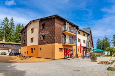 Dobrý den, s radostí vám představujeme hotel, který jako jediný stojí přímo na vrcholu ski areálu Lipno, u konečné stanice lanovky a jen pár kroků od Stezky korunami stromů. V zimě je hotel součástí rušného lyžařského centra, v létě se stává přirozeným výchozím bodem pro turisty a rodiny mířící k Lipenské přehradě, na kola nebo pěší trasy.