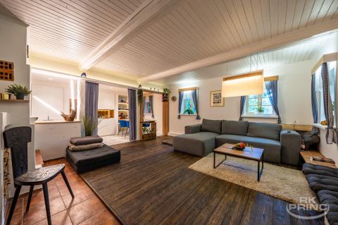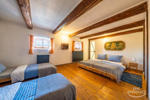 Unikátní 350 let stará chalupa po kompletní stylové rekonstrukci. Nabízíme k prodeji naprosto výjimečnou nemovitost – 350 let starou chalupu, která si zachovala svou původní atmosféru, ale prošla citlivou, komlpetní a designovou rekonstrukcí interiéru. Chalupa se nachází na magickém místě uprostřed přírody a nabízí široké možnosti využití – od zavedeného penzionu přes rodinné sídlo pro rekreaci až po zázemí pro firemní nebo společenské akce. Přednosti a vybavení nemovitosti: - 2 samostatné apartmány s kapacitou až 16 osob, - 1 prostorný mezonetový byt 150 m2 pro majitele s velkou kuchyní a luxusním sociálním zázemím, - volný půdní prostor s možností rozšíření pro další apartmánový provoz, - truhlářská dílna – samostatná, plně funkční, - společenská místnost, - mezonetové apartmány se samostatnými vstupy, - samostatně stojící vinárna s barem a vlastním WC, - koupací biotop a venkovní bazén, - relaxační zóny uvnitř i na pozemku, - venkovní terasy s výhledem do zeleně, - udírna v lese a útulná zákoutí k posezení. Investiční potenciál: - výnosová nemovitost s fungujícím rezervačním systémem a dlouholetou klientelou - samostatné webové stránky a marketingové zázemí - možnost kombinace bydlení a výnosu z pronájmu. Tohle místo má duši, historii i budoucnost. Stačí přijet, posadit se s kávou na terasu, zaposlouchat se do ticha a vnímat klid, který tu vládne už stovky let. Pro více informací nás prosím kontaktujte.