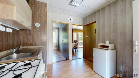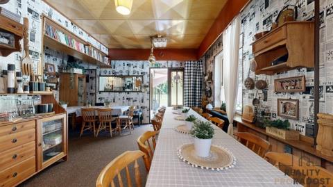 Součástí areálu je rozlehlá hlavní budova zkolaudovaná v roce 1989, doposud využívaná převážně v letní sezoně. Nabízí deset pokojů, několik koupelen, společenský sál, restauraci/jídelnu, velkou kuchyň a technické zázemí. Temperování zajišťuje automatický kotel, ohřev vody tři bojlery. Objekt je určen primárně pro sezónní provoz, ale potenciál je jednoznačně celoroční – buď kompletní rekonstrukcí dle vlastního stylu, nebo vytvořením zcela nového architektonického konceptu. Lokalita i pozemek doslova vybízí k vybudování moderního rekreačního zařízení, glamping resortu, penzionu, školícího centra nebo soukromého retreatu. Energetický štítek není k dispozici, je to stará chata určená k letní rekreaci – v inzerci, uvádíme třídu G.