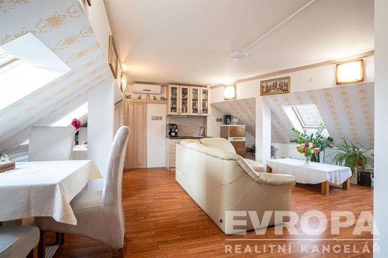 • Podkroví (82,88 m²): Loftový byt s šatnou a výhledem na město