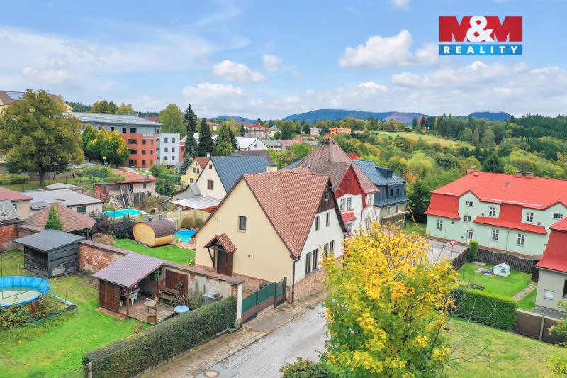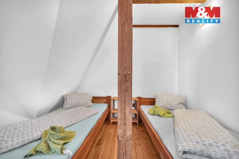 Nabízíme k prodeji jedinečný rodinný dům v centru obce Žacléř, který je aktuálně využíván jako penzion. V přízemí se nachází plně vybavená kuchyň propojená s obývacím pokojem, kde nechybí krbová kamna napojena na celý topný systém včetně ohřevu vody, dále ložnice a koupelna se sprchovým koutem a WC. V prvním patře najdete tři ložnice a koupelnu s vanou, sprchovým koutem, WC a bidetem. Podkroví je upraveno na pokoj se šesti lůžky. Sklep je využíván jako společenská místnost se saunou a sprchou. Na zahradě je k dispozici bazén, trampolína, sauna a pergola. Dům je ve velmi dobrém stavu. V okolí najdete široké možnosti pro volnočasové aktivity – od turistických tras a cyklostezek až po lyžařské areály Prkenný Důl a Bret. V obci se nachází veškerá občanská vybavenost. Přístup do obce v blízké budoucnosti zrychlí dálnice D11 s odhadovaným dokončením v roce 2028. Nemovitost je tedy ideální investice pro podnikání i rodinné bydlení. Pro domluvení prohlídky a další informace volejte makléře.