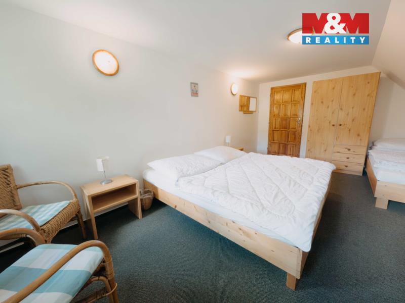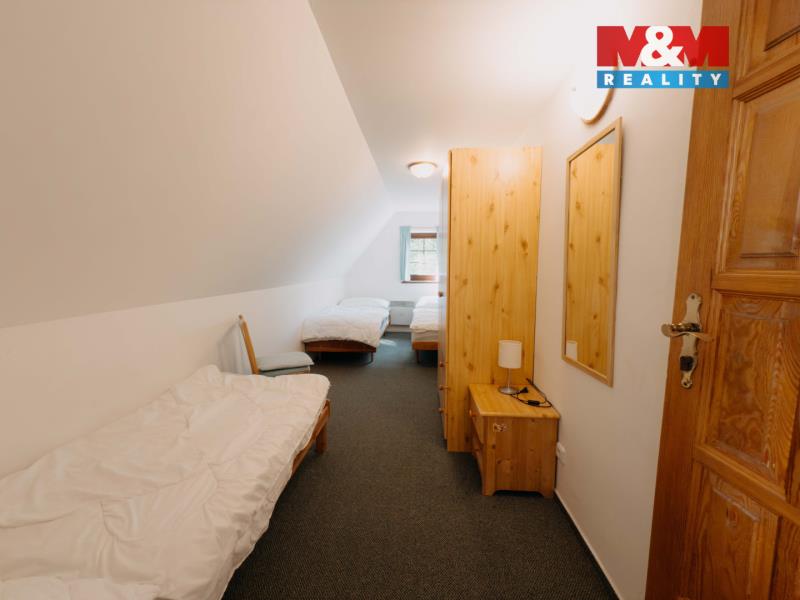 Nabízíme ke koupi rodinný penzion v krásném prostředí horské obce Kořenov k.ú. Polubný v Jizerských horách. V přízemí domu velká vstupní chodba s technickou částí, koupelnou se sprchovým koutem a toaletou.Samostatná ložnice s lůžky. Moderní kuchyně s jídelním koutem, vybavena spotřebiči navazuje na velkorysý obývací pokoj s kulečníkem, krbem a krbovými kamny. V 1.NP 3 pokoje vybavené lůžky a skříněmi, menší pokoj sloužící jako sklad, koupelna se sprchovým koutem, umyvadlem, topným žebříkem a WC. Celkový počet lůžek 15+1. V suterénu se nachází herní a relaxační prostory se saunou, sprchou a toaletou, stolní tenis a biliárem. Na rozsáhlém pozemku o rozloze 2643 m² je zahradní domek, hřiště a dětské prolézačky. Vzrostlé stromy, zeleň a okolní příroda vytváří útulnou a klidnou atmosféru a nabízí široké vyžití v letních i zimních měsících. Dům napojený na vodovod i kanalizaci, podlahy koberce a keramická dlažba. Střešní krytina falcovaný plech. Naviděnou na prohlídce