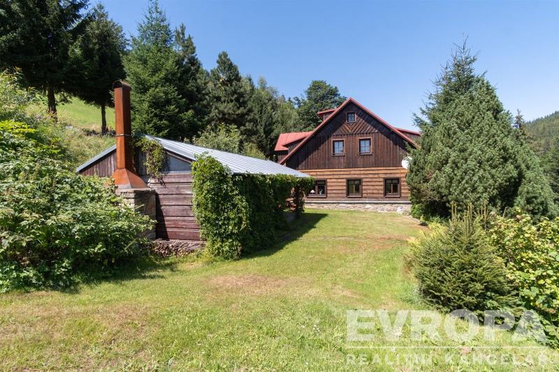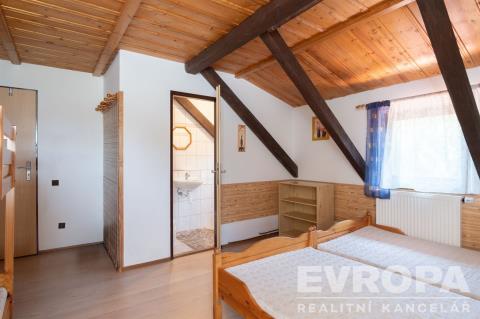 Exkluzivně Vám nabízíme k prodeji celoročně přístupnou chalupu přímo na sjezdovce a současně v dosahu služeb města Vrchlabí. Tato chalupa v současné době nabízí vlastní pohodlné bydlení + možnost komerčního pronajímání. Můžete tak zahodit všední starosti velkoměsta za hlavu a přijet k nám na hory, bydlet na sjezdovce a u toho podnikat. V pravé části domu se s vlastním vstupem nachází bytová jednotka o dispozici 5+kk s vlastním vstupem. V prvním nadzemní podlaží se nachází vstupní prostorná hala, 2 pokoje s vlastním sociálním zařízením, technická místnost a prostorná šatna. Ve 2.NP bytu majitele je velmi dobře řešený prostorný obývací pokoj, s jídelnou a kuchyňským koutem s východem na terasu, ložnice a koupelna. V podkroví je poslední pokoj se sociálním zařízením a úložným prostorem šatnou. Tato přístavba domu byla realizována v roce 20072008. V levé části domu se samostatným vstupem je v současné době 24 lůžek v sedmi samostatných pokojích s vlastním sociálním zařízením (všechny pokoje jsou umístěny ve 2. NP). V 1. NP je vstupní chodba, světnice s posezením, bar s výčepem, prostorná kuchyň, sociální zařízení, technická místnost, sklep, sklad a lyžárna. V podkroví této části jsou úložné prostory. Dům má velmi prostorný pozemek, kde je dostatek parkovacích míst pro Vás i Vaše hosty. Na zahradě je zastřešené posezení pro klid a pohodu při Vašem odpoledním grilování. Na pozemku dále naleznete vlastní pramen vody a tenisový kurt. Pokud Vás tato nemovitost zaujala, neváhejte se s námi domluvit na prohlídce domu. Po domluvě jsou prohlídky možné i o víkendu.