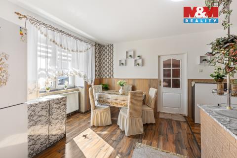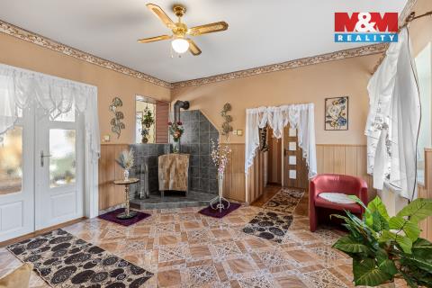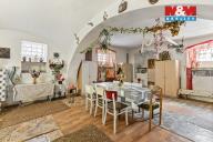 Dům je zajímavý jak svojí historií, tak provedením. Postavili ho před rokem 1890 Schwarzenbergové, kteří zde vlastnili mimo jiné i sousedící pivovar. Dům je velký, prostorný a i členitý. Je dvojpodlažní a má i ohromnou půdu. Má zastavěnou plochu 250 m2 a co Vás překvapí je přízemí domu, kde Vás na první pohled zaujmou silné sloupy s podloubím ve velkém, otevřeném prostoru. Dům má dispozici 5 + 1 a obytná plocha je v patře. Vnitřním schodištěm se tak dostaneme do vstupní haly, kde jsou krbová kamna. Z ní pak do ložnice nebo koupelny a WC. Rovně vejdeme do jídelny, ze které vlevo je obývací pokoj a vpravo kuchyně. Z kuchyně se pak dostaneme do dvou dalších ložnic. Na půdu vystoupáme po pohodlném schodišti a ta nás pak překvapí také svou velikostí a výškou, kde jsou další možnosti k rekonstrukci. Zahrada je převážně okrasná a najdeme tu i zděné kolny. Neváhejte nás kontaktovat o bližší informace.