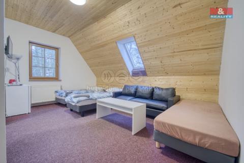 Nabízíme k prodeji dvoupodlažní penzion s restaurací a ubytováním v klidné části obce Jesenice u Rakovníka. Objekt stojí na vlastním pozemku o ploše pozemku 136 m2. Celková užitná plocha činí 272 m2. Objekt disponuje 7 plně vybavenými pokoji (23 lůžek), včetně sociálního zařízení. Pokoje se nachází v 1. patře. Přízemí je vybaveno velkou, prostornou kuchyní s poctivou pecí na pizzu. Dále zde máte prostor pro posezení, které je dělané ve dřevě a do stylu útulného vagonu (42 míst). V letních měsících je zde možnost sezení před objektem, kde si můžete užívat krásného pobytu v přírodě a úžasného výhledu na blízký rybník. Objekt má vlastní vrtanou studnu a připojení na obecní kanalizaci. Topení je řešeno ústředním topením tepelným čerpadlem rozvedeným do radiátorů. Možnost parkování je, na pronajatém pozemku od města, hned u objektu. Celý objekt je zateplen a zkolaudován v roce 2020. Budeme se na Vás těšit na prohlídkách