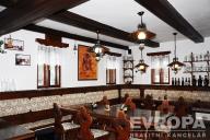 V přízemí je vstupní chodba, kancelář (recepce), vpravo restaurace s výčepem, restaurační kuchyně s PB sporáky a digestoří, příruční sklad, WC personálu, pivní sklep s kamennými klenbami , sklad s vodárnou, garáž s roletovými vraty (sklad), box lednice. výstup na venkovní terasu. Z chodby vlevo je vinárna, WCm, WCž, dvě technické místnosti.