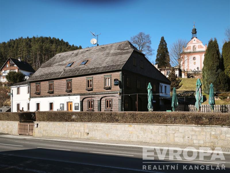Penzion je situován u hlavní průjezdové silnice obcí a vybízí k zastavení za účelem příjemného posezení a relaxace v průběhu všech sportovních aktivit, které lze v okolí realizovat. V blízkosti autobusové zastávky. Tato nemovitost je vhodná pro zájemce, kteří hledají seberealizaci v jedinečné lokalitě. V případě zájmu o prohlídku nás neváhejte kontaktovat.