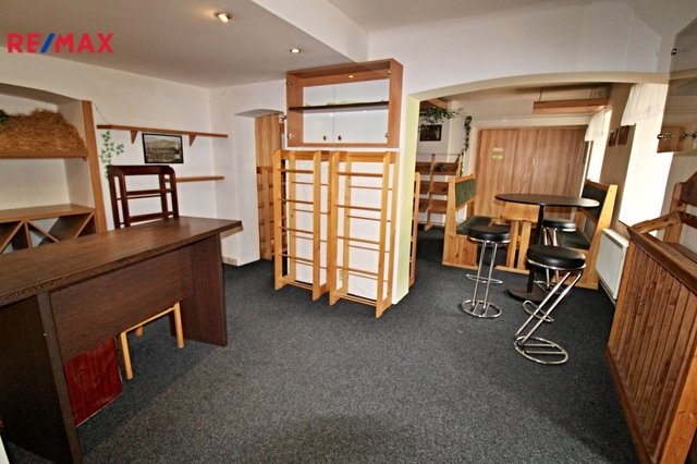 Objekt, tvořící roh náměstí je dvoupodlažní, částečně podsklepený, v dobrém stavu. Celková zastavěná plocha včetně dvorku je 395 m2.