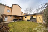 Součástí domu je zděná garáž (38 m²) s plechovými sekčními vraty, aktuálně využívaná jako sklad.