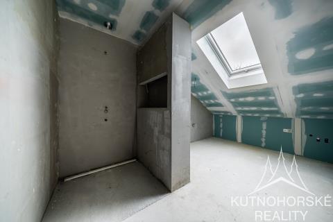 Podkroví je nově připraveno k dokončení dle přání nového majitele. V roce 2023 zde byla kompletně přeložena střecha a rozvedena elektřina, voda i odpady. Již nyní je vybaveno podlahovým vytápěním a kvalitními střešními okny, které interiér krásně prosvětlují a dodávají mu příjemnou atmosféru.