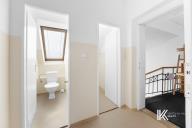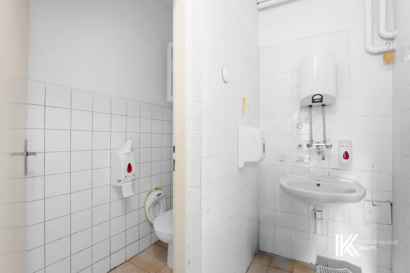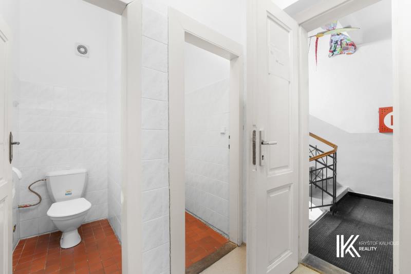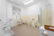 Koupelna je vybavena sprchovým koutem, čtyřmi umyvadly a dvěma toaletami, původně přizpůsobené pro děti. Nabízí možnost přeměny na moderní sanitární zázemí. V blízkosti schodiště jsou standardní dvě toalety.