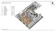 Třetí podlaží je rozděleno posuvnými dveřmi na dvě části.