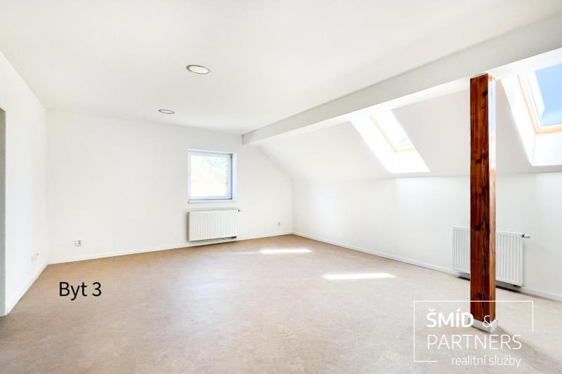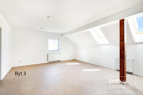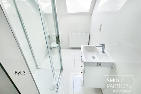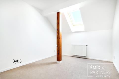 Nabízíme k prodeji rodinný dům rozdělený na čtyři samostatné bytové jednotky s další vedlejší stavbou vhodnou na přestavbu pro potřeby bydlení. V domě jsou nově zrekonstruovány čtyři samostatné bytové jednotky, z toho dvě se nacházejí v přízemí a dvě v obytném podkroví. Byty mají samostatná odběrná místa a v suterénu jsou pro ně vyčleněny sklepní kóje. Interiér celého domu prošel rozsáhlou a kompletní rekonstrukcí, a to včetně zcela nového krovu. Jedná se o dvoupodlažní cihlovou stavbu na kamenném soklu se sedlovou střechou opatřenou pálenou taškou. Původní dům pravděpodobně pocházel ze začátku 20. stol. Dům je celopodsklepený a situovaný v mírně svažitém pozemku, což umožňuje přístup do suterénů nejenom vnitřním schodištěm, ale i bočním vstupem. Za hlavním vstupem se nachází centrální schodiště vedoucí v každém z podlaží do dvou bytových jednotek. Jak již bylo zmíněno, byty jsou po právě dokončené celkové rekonstrukci a nebyly dosud užívány. Kompletní rekonstrukce se samozřejmě dotkla jak celé vnitřní infrastruktury rozvodů, tak i veškerých vnitřních omítek, podlah, oken a v neposlední řadě koupelen a toalet. Samotná, velmi zdařilá, vkusná a kvalitně řemeslně provedená rekonstrukce bytů zahrnuje i hotové kuchyňské linky s vestavnými spotřebiči. Každý byt má svůj vlastní elektrický kotel a elektrický bojler. Vytápění je prostřednictvím teplovodních radiátorů, okna jsou v přízemí plastová a v podkroví doplněna střešními. Exteriér domu je připraven pro finální zateplenou fasádu. Na pozemku, který v čisté nezastavěné ploše měří 909 m2, se počítá s vlastní parkovací plochou pro každou bytovou jednotku, plochou pro okrasnou zeleň i pro dvě samostatné zahrádky k dalším bytovým jednotkám. Tyto bytové jednotky by dle plánu měly vzniknout ve vedlejší budově. Vedlejší budova je ve fázi hrubé stavby s dokončeným krovem a totožnou střešní krytinou jako hlavní dům. Projekt na tento dům počítá se vznikem dvou bytů v přízemí s možností zmíněných vlastních zahrádek a v podkroví s jedním velkým, či případně s dvěma menšími byty. Vzhledem k tomu, že tato budova není podsklepená, tak se se sklepními kójemi pro tyto byty počítalo ve vedlejším domě. Kóje jsou připraveny a zmíněný boční vstup do suterénu se nachází jen pár kroků. Elektrický rozvaděč je taktéž připraven na osazení čtyřmi elektroměry, tak aby i zde mohli bezproblémově vzniknout další byty. Pokud Vás tento projekt zaujal, prosím neváhejte mne kontaktovat a domluvit si prohlídku. Jan Česal