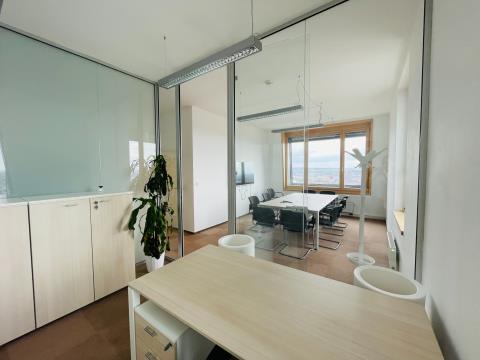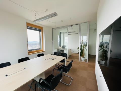 V zastoupení majitele nabízím exkluzivní prodej reprezentativní kanceláře ve 23. NP, s výhledem dosahujícím na Pálavu a to ve vyhledávané lokalitě, v prostorách nejvyšší budovy ČR - AZ Tower. Celková plocha kanceláře je 77 m², je rozdělena na čtyři místnosti, kuchyňský kout, koupelnu a WC (viz. přiložen půdorys). Jednotka je zkolaudována jako nebytový prostor / apartmán. Možnost koupě k nebytovému prostoru sklad, cena skladu 440 000,- Kč, který se nachází v 25. NP a dvě garážové parkovací stání, cena za obě 2 100 000,- Kč. Budova AZ Tower zajišťuje 24 hodinový servis recepce a ostrahy, doručování pošty (vlastní schránka), čipové výtahy. Nachází se zde fitness a wellness centrum, kavárna, restaurace, obchody, banky a další. Skvělá dostupnost na dálnici D1 (Praha – Bratislava – Ostrava – Vídeň) i městský okruh. Chtěli by jste mít i Vy kancelář na prestižní obchodní adrese? Kontaktujte mě a sjednejte si prohlídku této vybavené kanceláře!