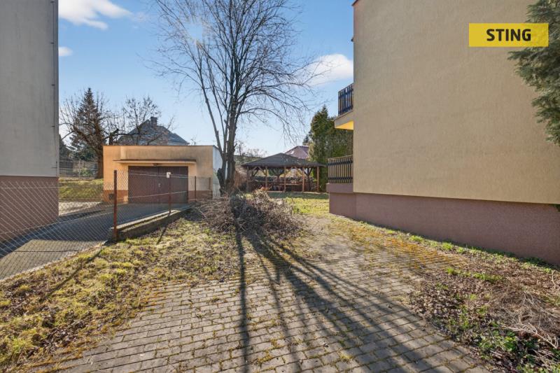 Součástí nemovitosti je garáž a vjezdová brána na zahradu pro další 2 (až 3) automobily, brána má šířku 2,5 metru.