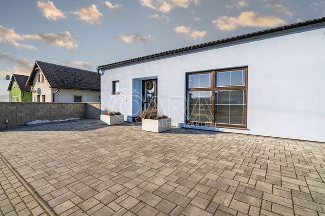 Váš byznys může nakopnout komerční areál v Sukoradech u Mladé Boleslavi. Je vhodný pro sídlo firmy, prodejnu, skladování apod. Je ve výborném stavu po dokončení před 3 lety a jeho provoz je velmi levný díky tepelnému čerpadlu, fotovoltaice nebo vlastní studni. Energetická třída budovy je proto A. Měsíčně zaplatíte za elektřinu jen pár tisíc korun. Parkovat se dá před vchodem i vpravo od budovy, celkem je tu 12 parkovacích míst o ploše 456 m2 a vjedete sem i kamionem. Areál je oplocený a vybavený elektrickou bránou. Na pozemku 816 m2 najdete zateplenou budovu ve tvaru písmene U o zastavěné ploše 228 m2. Ta má užitnou plochu 187 m2 a vešla se do ní spousta místností – velká recepce se showroomem, zasedací místnost, 4 kanceláře, WC, skládek, kuchyňka, koupelna, místnost s technologiemi a sklad (téměř 60 m2) se zatepleným a vysokým stropem a 2 elektrickými vraty. Větší místnosti mají klimatizaci. Součástí prodeje je i nábytek v recepci a kuchyňce. Objekt je napojený na elektřinu, vodovodní řad a kanalizaci. Za budovou můžete grilovat a relaxovat díky zastřešenému posezení. Objekt je kolaudován pro obchodní využití. V Územním plánu obce spadá do plochy Bydlení vesnické, které umožňuje stavby a zařízení souvisejícího občanského vybavení (např. maloobchodní prodej, veřejné stravování a ubytování a další nerušící výrobní a nevýrobní služby) plus nezbytná související technická vybavenost. Donedávna zde sídlila firma Mistr Topič s.r.o., která se přesunula kousek vedle do větších prostor. A jelikož to jsou experti na na vytápění a fotovoltaiku, tak zde nešetřili na kvalitní moderní technologii díky které ušetříte vy. Posuďte sami – tepelné čerpadlo Acond Grandin N s výkonem 9kw, fotovoltaika na střeše o výkonu 9,9 kWp se střídačem SolaX X3-Hybrid-10.0-D G4 10 kW a bateriemi Solax T58 11,6 kWh. Na parkovišti jsou instalovány 2 nabíječky na elektromobily s wallboxem Solax 11 kW. Sukorady jsou vesnice s asi 400 obyvateli 9 km na východ od Mladé Boleslavi. Za 9 minut jste v OC Olympia, v Jičíně za 23 minut. Historie obce sahá do 15. století, původně zde byl rozsáhlý les, odtud název. Silnice I/16 bude přetrasována z Mladé Boleslavi Kosmonos (dálnice D10, exit na Českou Lípu a komerční zónu) do Martinovic. Nájezd bude před i za Sukorady. Tato přeložka o 3 pruzích uleví vesnicím na současné silnici č. 16 a zrychlí spojení do Mladé Boleslavi. Stavba má stavební povolení a byl vybrán dodavatel. Areál se prodává jako nemovitost. Přijeďte se sami přesvědčit o atraktivitě této nabídky.