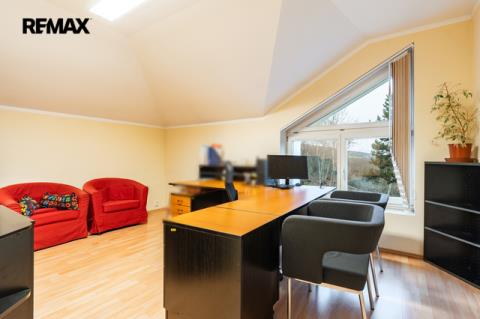 Ke koupi nabízím administrativní (kancelářskou) budovu v pražské městské části Zbraslav. Pokud hledáte nové sídlo pro svou firmu, toto jsou hlavní parametry nabízené nemovitosti: ✔ 6 kanceláří ve dvou podlažích (celkem 130 m²) ✔ 3 sklady v suterénu (celkem 65 m²) ✔ parkování na vlastním pozemku ✔ zahrada s možností variabilního využití Nemovitost je součástí komplexu dvou budov, které byly původně stavebně propojené. Aktuálně jsou obě administrativní budovy vlastnicky rozdělené a předmětem prodeje je z pohledu od vstupu zadní budova. Zahrada a parkovací plocha mají celkovou výměru 1 584 m² (samotná parkovací plocha cca 200 m²) - tyto pozemky jsou v podílovém spoluvlastnictví a předmětem prodeje je spoluvlastnický podíl ve výši 2/3. Stavba byla kolaudována v roce 1999. Vytápění plynovým kotlem v suterénu budovy. Aktuálně je celá budova pronajatá jednomu stabilnímu nájemci s výpovědní dobou 6 měsíců. Průkaz energetické náročnosti budovy je ve zpracování, údaj bude doplněn. Dům se nachází jen 3 minuty chůze od autobusové zastávky Zbraslav. Autobus poskytuje přímé spojení se Smíchovským nádražím (18 minut jízdy) nebo s nádražím Radotín (14 min. jízdy). Díky přilehlé výpadovce Strakonická s napojením na pražský městský okruh je lokalita také velmi dobře dostupná autem. Zbraslav nabízí kompletní občanskou vybavenost, na nákupy nebo do restaurace je to tak vždy jen pár minut cesty. Těším se na viděnou na prohlídce!