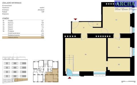 NABÍZÍME KE KOUPI nebytovou jednotka o celkové ploše 73.5 m2 a stavu shell and core (dokončena v základní formě) se nachází v 1. podlaží šestipodlažního bytového domu na Břevnově. Bytový dům se nachází těsně u ulice Belohorská, nedaleko od parku Královka, či sportovních areálů na Strahově. Jednotka je vhodná jako advokátní, projektová či výuková kancelář, též jako zázemí společnosti. Vlastnictví osobní Celková plocha 73,5 m Podlahová plocha 73,5 m Podlaží 1 Výtah ano K dispozici je ihned. ARCHA realitní kancelář PRAHA Telefon: 737851059, 702072257, 608135458 Dat. schránka: vdc4dg E-mail: archa-rk@seznam.cz www.instagram.com/nemovitosti_archa www.facebook.com/nemovitosti.archa www.twitter.com/archa_life www.archa-rk.cz