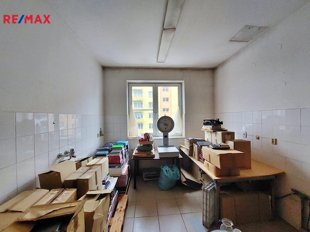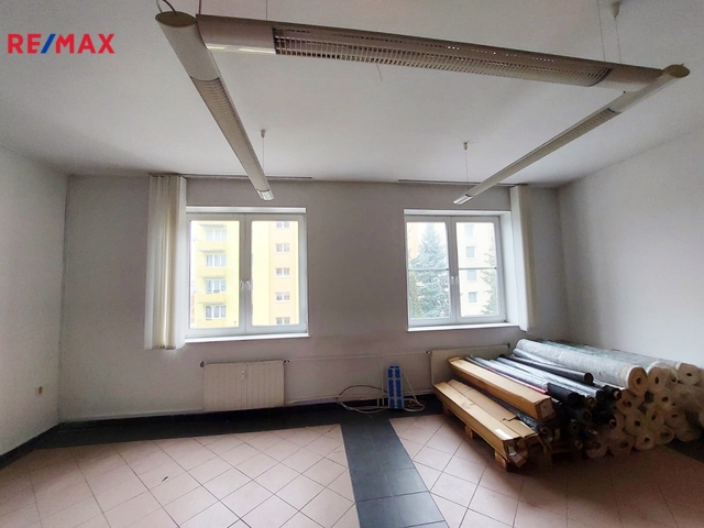 Dominantou prostoru je velká vstupní hala, která může sloužit jako hlavní obchodní prostor či kanceláře. Dále zde najdete několik menších místností, které mohou být využity například jako sklady. K dispozici je také prostorné zázemí v podobě velké kuchyně, šatny, toalety a koupelny se sprchou, což zajišťuje pohodlí pro pracovníky. Vytápění je řešeno centrálním plynovým kotlem pro celý dům s rozvody do radiátorů, tímto je řešen i ohřev vody. Dodávka tepla je pro uvedený prostor měřená kalorimetrem.
