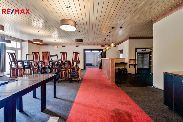 Nabízíme k prodeji obchodní prostor v Táboře, v Leskovické ulici na Náchodském sídlišti. Objekt stojí na pozemku o výměře 578 m2 a je součástí komplexu budov, který byl v 70. letech vybudován jako "Společenské centrum". V minulosti sloužily prostory jako restaurace, ale je možné je využít i jiným způsobem, třeba jako obchod. Užitná plocha 1.NP je 194 m2. Restaurace měla 85 m2, klubovna 31,5 m2, přípravna 25 m2. Ostatní plocha byla tvořena sociálním zařízením skladem, kanceláří a jinými provozními prostory Užitná plocha suterénu je cca 177 m2. Prostor tvoří sklady, příjem zboží, šatny, umývárny, chladící boxy, výtah. Na restauraci navazovala venkovní terasa s výměrou cca 80 m2. Objekt je napojen na plyn, vodovod, kanalizaci a elektrickou síť. Vytápění je plynovým kotlem. Pro celý objekt máme vyhotovený 3D scan. Z kapacitních důvodů je u inzerátu pouze 1.NP. Suterén Vám můžeme poslat. V případě zájmu o prohlídku kontaktujte makléře poptávky. Prodávající si vyhrazuje právo vybrat kupujícího na základě jím zvolených kritérií.