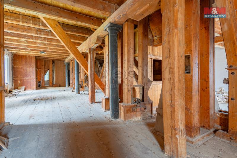 Nabízíme na prodej jedinečný areál spojující kouzlo historie s moderním energetickým potenciálem. Součástí je funkční malá vodní elektrárna (MVE) s platným vodním právem, Francisovou turbínou o výkonu 25 kW, spádem 1,55 m a průtokem 2,4 m³/s. Vlastní náhon a odtok zajišťují nezávislý provoz. Dominantou areálu je historický Červený (Zdeborovský) mlýn s původní technologií – pračkou a loupačkou obilí, mlýnskými kameny na špaldovou mouku a autentickými prvky (trámy, kamenné zdi, vysoké stropy). Velkorysé vnitřní prostory s vysokými stropy nabízejí široké možnosti využití – od rekonstrukce na stylové bydlení po turistické či gastro projekty. Součástí prodeje jsou také dva rodinné domy (3+1 a 2+1) a přilehlé stavby s celkovou užitnou plochou 934 m². Celý komplex stojí na pozemcích o rozloze 41 670 m², z toho 12 217 m² tvoří vodní plocha. Tento unikátní objekt je ideální příležitostí pro investory, podnikatele i ty, kdo hledají spojení historie, přírody a soběstačné energetiky.