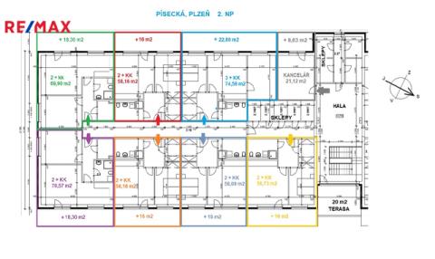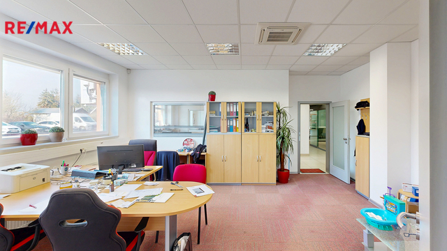 Nabízíme prodej víceúčelové dvoupodlažní budovy o zastavěné ploše 746,50 m2 s celkovou plochou pozemků 2 175 m2 na okraji Plzně, Bručná, ul. Písecká. Objekt postavený v roce 2015 se nachází v bezprostřední blízkosti sjezdu č. 73 na dálnici D5. Disponuje nadstandardním počtem parkovacích míst cca 35 (před i za objektem). Pozemek za objektem je možné využít i jako případný další stavební pozemek. Přesné zakreslení předmětu prodeje je ve fotodokumentaci. Zděná budova v sobě zahrnuje v bezbariérovém přízemí nebytové prostory o celkové ploše 609 m2, z toho prodejní (251 m2), 5 kanceláří (78 m2), dva velké sklady či případné výrobny (184 m2), technické místnosti budovy, provozní zázemí pro pracovníky (jídelna, šatna, sprchy, toalety). V 1. patře o celkové podlahové ploše 556 m2 se nachází 7 bytových jednotek 2+kk a 3+kk (plocha 58 až 74 m2) s velkými lodžiemi (16 - 24 m2) a komorami a sklepy - k pronajímání. Součástí prodeje je ještě v 1. patře další samostatná kancelář (21 m2) s lodžií (8 m2). Středové části budovy (schodiště, vstupní hala v obou podlažích, kolárna, toalety, vodárna) o podlahové ploše 155 m2 jsou společné ve vlastnickém podílu 1/2. Nebytový prostor i byty jsou zapsány v katastru nemovitostí jako samostatné jednotky, proto je lze i následně samostatně prodat. Upozornění: v přiložené 3D prohlídce 360o lze odstranit nábytek a dekorace (ovládací ikonka "křeslo" vlevo dole). Stavebně se jedná o sloupovou konstrukci vyzděnou z cihel POROTHERM EKO+ a kontaktním zateplením 20 cm. Všechna okna a výlohy mají trojskla a nebytové prostory motorické exteriérové žaluzie. Vytápění objektu je zajištěno dvěma plynovými kondenzačními kotli zapojenými v kaskádě s oddělenými měřeními spotřeby tepla nebytových prostor a jednotlivých bytů. Zvláštností je zdroj pitné vody z vlastního vrtu s propracovaným způsobem zpracování, filtrace a jímání vody pro celý objekt. Spotřeba vody je rovněž zcela samostatně měřitelná. Kanalizace je zde oddělená, splašková je svedená do veřejné kanalizace. Ohřev teplé vody zajišťují bojlery zvlášť v nebytové části a samostatné v jednotlivých bytech. V přiložené fotodokumentaci jsou fotografie vzorového bytu, který je velmi podobný s ostatními. Vážnému zájemci je možno poskytnout kompletní projektovou a technickou dokumentaci. V současnosti je nebytový prostor pronajatý a byty rovněž. Objekt splňuje všechny nejnáročnější požadavky z hlediska zabezpečení (zabezpečovací zařízení s docházkových systémem), požární bezpečnosti i dostatečné kapacity obchodních prostor s nutným zázemím. Nespornou výhodou nabízené nemovitosti je kromě kvalitní stavby zejména blízkost dálnice a obchodního centra Olympie.