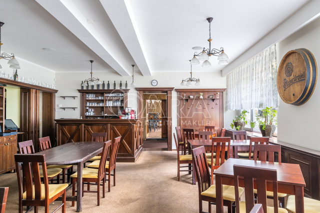 Máte jedinečnou šanci koupit restauraci Heller, která se skládá ze 2 místností, recepce, salónku, kuchyně a skladu s celkovou plochou 261 m2. Restaurace byla vždy zisková a jako jedna z mála byla provozována celoročně. V hlavní sezóně využívala i zahrádku na ulici, celková kapacita je asi 120 míst. Patří k ní i rozsáhlé sklepy ve výhradním užívání a 3 parkovací místa v zadní části. A k tomu všemu ještě rozlehlá půda s vysokými stropy o ploše 165 m2, kde můžete vytvořit 3 ubytovací jednotky. Rozvody jsou připraveny. Majitel je fyzická osoba, dosavadní provozovatel a do nedávna majitel celého domu. Původní hotel přeměnil na apartmány v 1. patře (plus jeden na půdě) a prodal je. Na listu vlastnictví jsou restaurace a půda zapsány jako 2 jednotky se způsobem využití jako jiné nebytové prostory. Prohlášení vlastníka je z roku 2022, v domě je založeno SVJ, současný majitel je jeho předsedou. Stav objektu je velmi dobrý, má několik originálních prvků jako pískovcové portály nebo dveře. Je průběžně udržován, má novou střešní krytinu, zateplení a tepelné čerpadlo. Provoz tudíž není drahý, energetická třída objektu je C. Fond oprav je pouze 10 Kč/m2. Pro využití se nabízí několik variant: Zachovat restauraci a na půdě vytvořit ubytovací jednotky I celou restauraci předělat na ubytovací jednotky Zachovat rybářský salónek pro bistro/prodejnu a propojit ho s kuchyní Cena je velmi příznivá – vše vyjmenované získáte za cca 12 000 Kč/m2 a to nepočítám rozsáhlé sklepní prostory a parkování. Jen pro představu – byty/apartmány se v Doksech prodávají asi za 70 000 Kč/m2. Přijďte se sami podívat jak kreativně pojmout a okouknout všechny trofeje a historický bicykl. I to je v ceně.