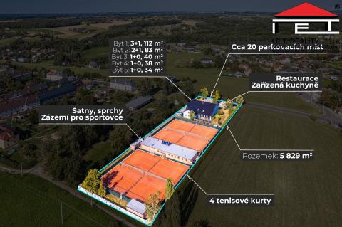 Dominantou areálu jsou čtyři tenisové kurty, které poskytují ideální podmínky jak pro rekreační hráče, tak pro pořádání turnajů, klubových aktivit nebo sportovních akcí. Samozřejmostí je kompletní zázemí pro sportovce – šatny, sprchy a sociální zařízení, zajišťující komfort pro hráče i návštěvníky. Celoroční provoz zajištěn. Krásné prostředí plné zeleně s výhledem na Beskydy.
