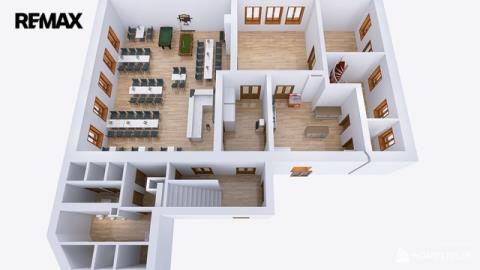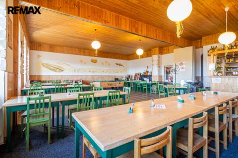 V prvním nadzemním podlaží je restaurace s kapacitou cca 80 míst, která může sloužit i jako sál pro různé akce, dále vybavená kuchyně a zázemí ke kuchyni, sklad, kancelář, toalety pro hosty atd. Součástí přízemí jsou další 2 větší místnosti, které v minulosti sloužily jako obchod, který je možné obnovit. Před restaurací je kryté venkovní posezení, s kapacitou 20 míst. Celková výměra přízemí je cca 262 m².