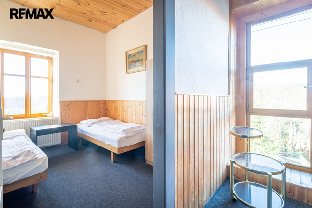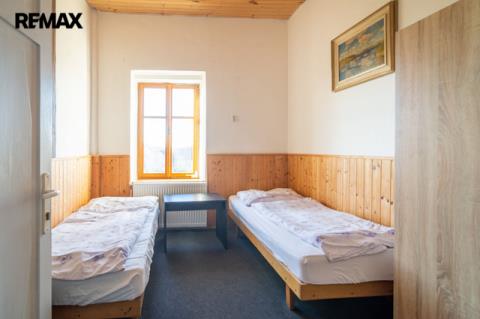 Druhé nadzemní podlaží je rozděleno na 2 části, v jedné je 8 pokojů pro ubytování hostů, venkovní terasa s pěkným výhledem do krajiny a společné sprchy a toalety na chodbě. Celková výměra části s ubytováním je 124 m² V druhé části patra je byt o dispozici 4+1, se dvěma koupelnami a zastřešenou terasou. Celková výměra bytu je 106 m² + 18 m² terasy.